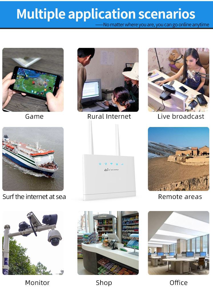 1. Conexiunea rapidă la Internet cu cartela SIM introdusă și semnalul 4G pot fi convertite atât în Ethernet, cât și în WiFi, care oferă servicii de date și servicii de voce de înaltă calitate.